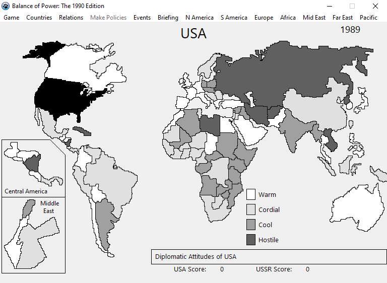 ![]() And now for something completely different: A port I did of the classic 1988 Cold War geopolitical strategy game written by Chris Crawford for the original Apple Macintosh. I played this game a lot when I was younger, so for a long time I had it in mind to try to port it to a modern OS, especially given its (unfortunate) renewed relevance in recent years. This is essentially a port from the original (obsolete) Pascal dialect to Free Pascal, which can be compiled and run on any modern 32/64-bit operating systems. |
